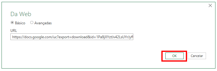 Na janela exibida abaixo basta colar o link e clicar em ok.