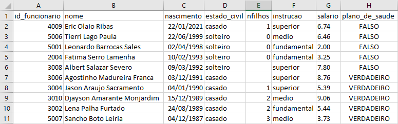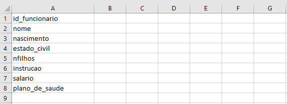 Agora vamos visualizar a tabela de dados “funcionario” no Excel.